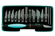 Handy Scapel knife set with interchangeable blades. 12 x assorted blades, 2 x scribes, Magnetic bar and case storage.