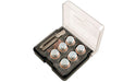 Contains: 1 x M17 x 1.5 tap, 6 drain plugs and 12 copper washers. Always use one size larger to re-tap thread. Supplied with oversize tap.