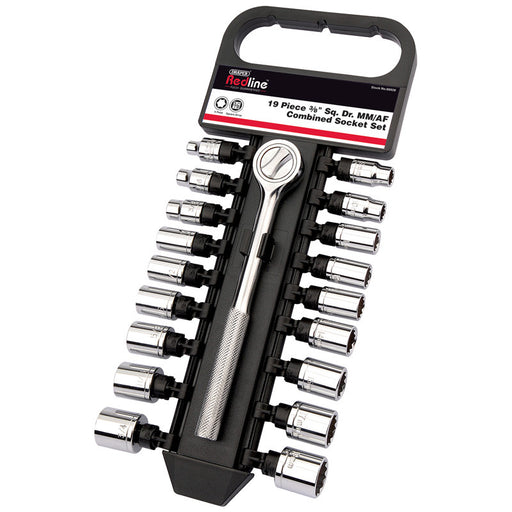 DRAPER REDLINE 3/8" MM/AF SOCKET SET 19pc