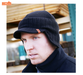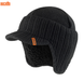 Stylish knitted peak cap with turn up hem and ear flaps. Soft wool effect inner lining.