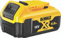 The DEWALT DCB184 5.0Ah XR Li-ion battery packs will deliver 66% more runtime than a standard 3.0Ah battery pack. They have an LED state of charge indicator to help manage pack charging. They have a lightweight design that provides the user with upgraded 5.0Ah Power without increasing the size or weight over the 18 Volt 3.0Ah battery pack.