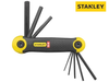 Stanley 8 or 9 Piece Folding Hexagon Key Set with a bi-material grip for increased comfort and a chamfered tip to aid location. With a phosphate finish for corrosion protection.